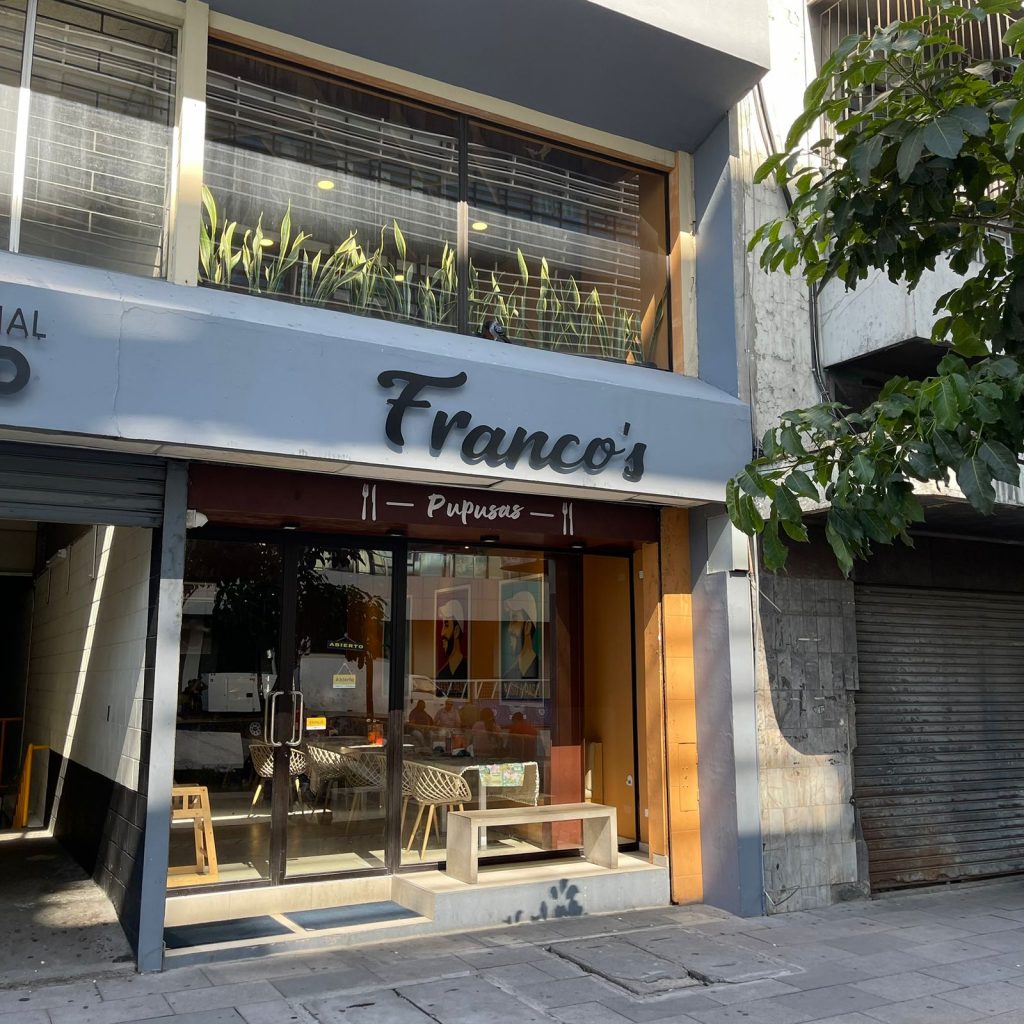 En el Centro Histórico de San Salvador, justo a un costado de la BINAES, Franco’s Restaurante te recibe con el auténtico sabor salvadoreño. Somos el punto de encuentro perfecto para disfrutar en familia o con amigos de las tradicionales pupusas, preparadas con ingredientes frescos, el sazón de casa y ese toque que las hace irresistibles.