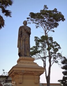 Estatua original de José Matías Delgado donada en 1911 por colonias europeas, demolida en 1986
